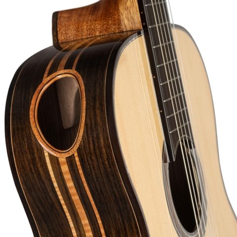 • Rosewood back & sides w/Flamed Maple stripes, gloss finish.