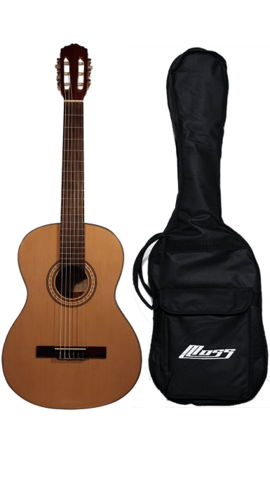 Flot og velspillende spansk akustisk guitar fra Moss. Guitaren er med Gran dæk og mahogni sider og bagside. Guitaren et rigtig godt valg til guitaristen som vil have en rigtig fin guitar at starte på. Modellen er i en kvalitet så den kan bruges i flere år efter man er blevet øvet.