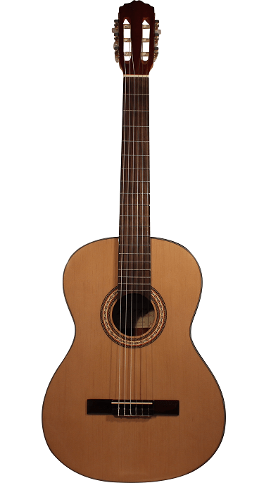 Guitaren er med Gran dæk og mahogni sider og bagside samt gribebræt af rosentræ.