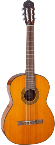 Takamine GC3-NAT - GC3 kombinerer en massiv cedertræ top med mahogni bagside og sider, der producerer en rig, resonanslyd. Den komfortable mahogni-hals og laurbær-gribebræt giver fantastisk følelse og spilbarhed, mens den smukke indlagte mosaikroset tilføjer et strejf af traditionel elegance.