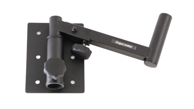 Supreme - Speaker Wall Mount 1 stk - PA-højttaler-ophæng til væggen i sort lakeret stål. Højdejustering. Passer til alle PA-højttalere med standard monterings-huld. Max. Load: 40 kg. Længden fra væggen er 30 cm.