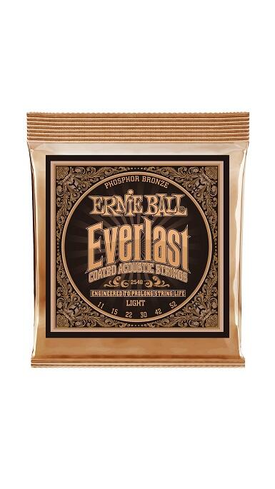 Ernie Ball Everlast Phosphor Bronze Light 11-52 - Str. 011, 015, 022w, 030, 042, 052. Coatede strenge fra Ernie Ball. Nano-coating betyder at dine strenge holder 3 - 5 gange længere end almindelige strenge og bevarer tonen meget længere.