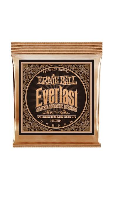 Ernie Ball Everlast Phosphor Bronze Medium 13-56 - Str. 013, 017, 026w, 034, 046 056. Coatede strenge fra Ernie Ball. Nano-coating betyder at dine strenge holder 3 - 5 gange længere end almindelige strenge og bevarer tonen meget længere.