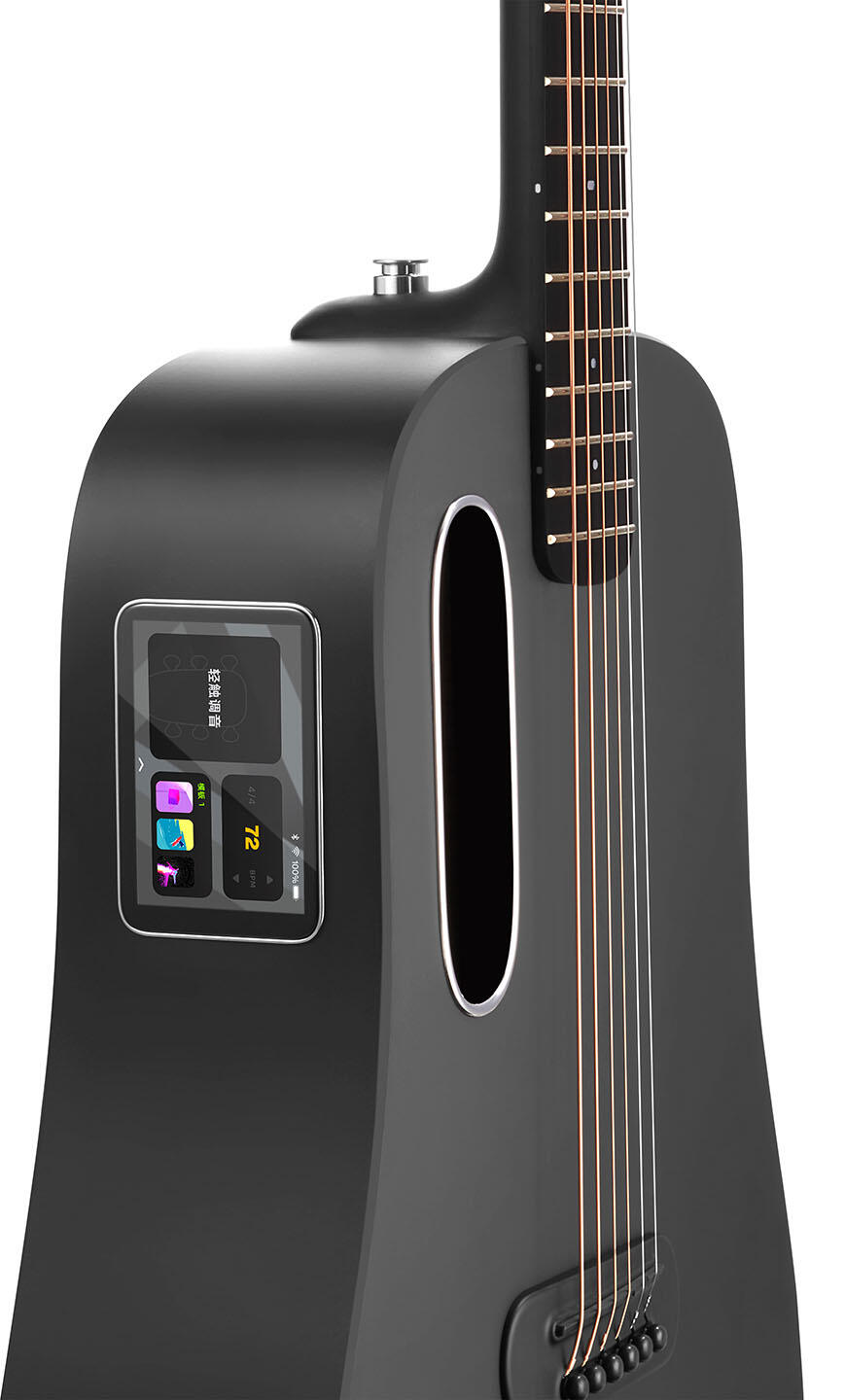 BLUE LAVA Touch Midnight Black Lite Bag - Akustisk westernguitar i trælaminat med touchskærm og indbyggede effekter, tuner, looper, metronom, beats, WiFi, Bluetooth mv. Beige AIRFLOW gig-taske medfølger. Farve: Midnight Black