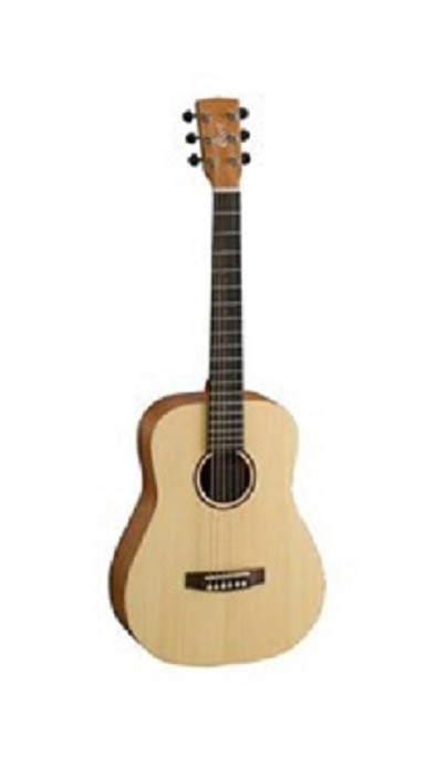Mini westernguitar fra Cort med massivt grandæk, mahogni krop/hals og med gribebræt i rosentræ. Inkl. gigbag.