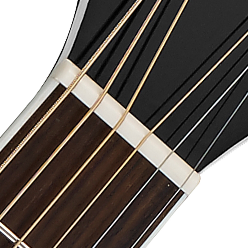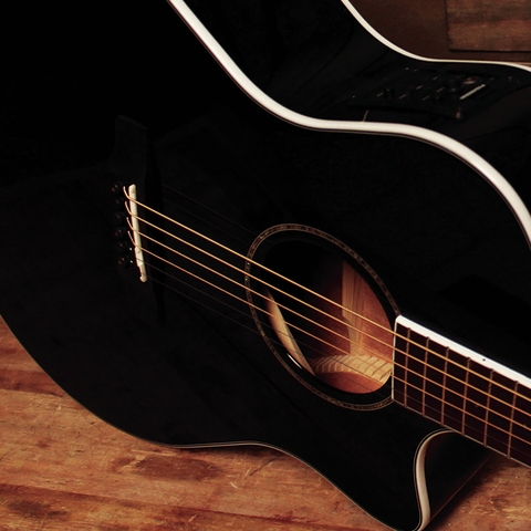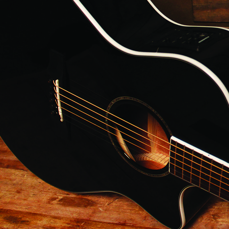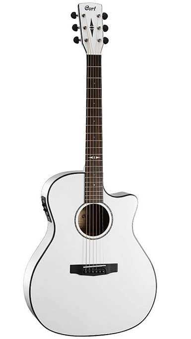 Halvakustisk western med venetiansk cutaway, massivt grandæk, sider og bund af mahogni og pickupsystem fra Fishman. Guitaren findes i hvid, sort eller natur.
