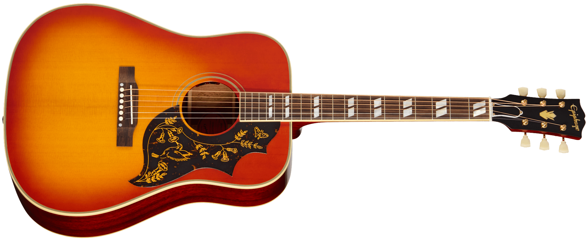 Epiphone og Gibson™ Custom præsenterer Inspired by Gibson Custom 1960 Hummingbird Reissue, en trofast genskabelse af den legendariske førsteårs Hummingbird. Denne model har været spillet af alt fra Keith Richards til Thom Yorke og er kendt for sin alsidighed – uanset om du fingerpicker blødt, strummer hårdt eller spiller solo, leverer den altid smukke, velafbalancerede toner.