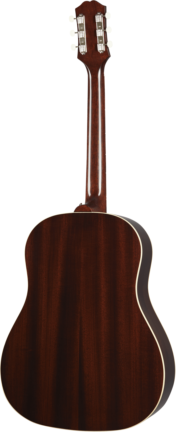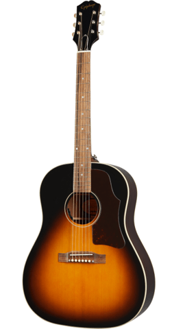 Epiphone - J-45 AVSG - All Solid Wood Fishman Sonitone - Epiphones seneste gengivelse af den ikoniske "arbejdshest" som J-45 bliver kaldt. Den klassiske J-45 har været valget af legendariske musikere lige siden den blev introduceret første gang i 1942. Kendt som The Workhorse, - Gibsons mest berømte og mest populære akustiske guitarmodel. Nu har Epiphone udgivet en ny udgave, Inspireret af Gibson™ J-45™ med alle de funktioner, som guitarister ønsker, inklusive fuld massiv trækonstruktion, en behagelig afrundet C-halsprofil, 20 mellemstore jumbobånd, Kalamazoo-hoved i 60'er-stilen og en smuk Aged Vintage Sunburst finish. Fishman® Sonicore pickup under sadlen og Sonitone-forforstærkeren gør denne Workhorse sceneklar.