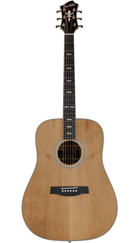 Hagström - Elfdalia II Dreadnought - Elfdalia II-modellerne, der er lavet med en massiv Cedar-top og mahogni på sider og bagside, hvilket giver en meget "livlig tone", da Cedar-toppen får det øverste midterste interval frem og har en tendens til at være harmonisk aktiv. Cedar er et godt materiale til at hjælpe med at udtrykke instrumenternes overtoner. Cedertræ er et mørkere træ end gran, strukturen i træet inden i Cedar-toppen har ofte højere densitet end gran. Den højere densitet og træets struktur gør det muligt for toppen af instrumentet at vibrere mere, hvilket giver en mere vellydende tone. Cedar fungerer meget godt til både strumming og fingerstils teknik. Med Elfdalia-modellerne er prikken over i'et guld hardware, som bestemt vil fange guitaristens og publikums opmærksomhed. Instrumentets udseende matcher rigtig godt med instrumentets "Gyldne" vellydende tone.