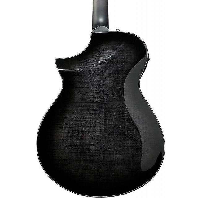 Ibanez - AEWC400-TKS - (Transparent Black Sunburst High Gloss) Halvakustisk western guitar. Som branchens førende inden for anvendelse af eksotiske træsorter fortsætter Ibanez med at innovere med sin nye AEWC-serie. Det kombinerer en smuk flammende ahorntop med en lige så elegant kant og bagside af flammet ahorn. Den tyndere, skrå kant gør det behageligt og et perfekt valg for sing and song writers. En "blød" florentinsk udskæring giver nem adgang hele vejen til det 17. bånd. De eksotiske skove kombineret med Fishman Pickup og Ibanez Preamp leverer en markant tone og look, der inspirerer fantasien.