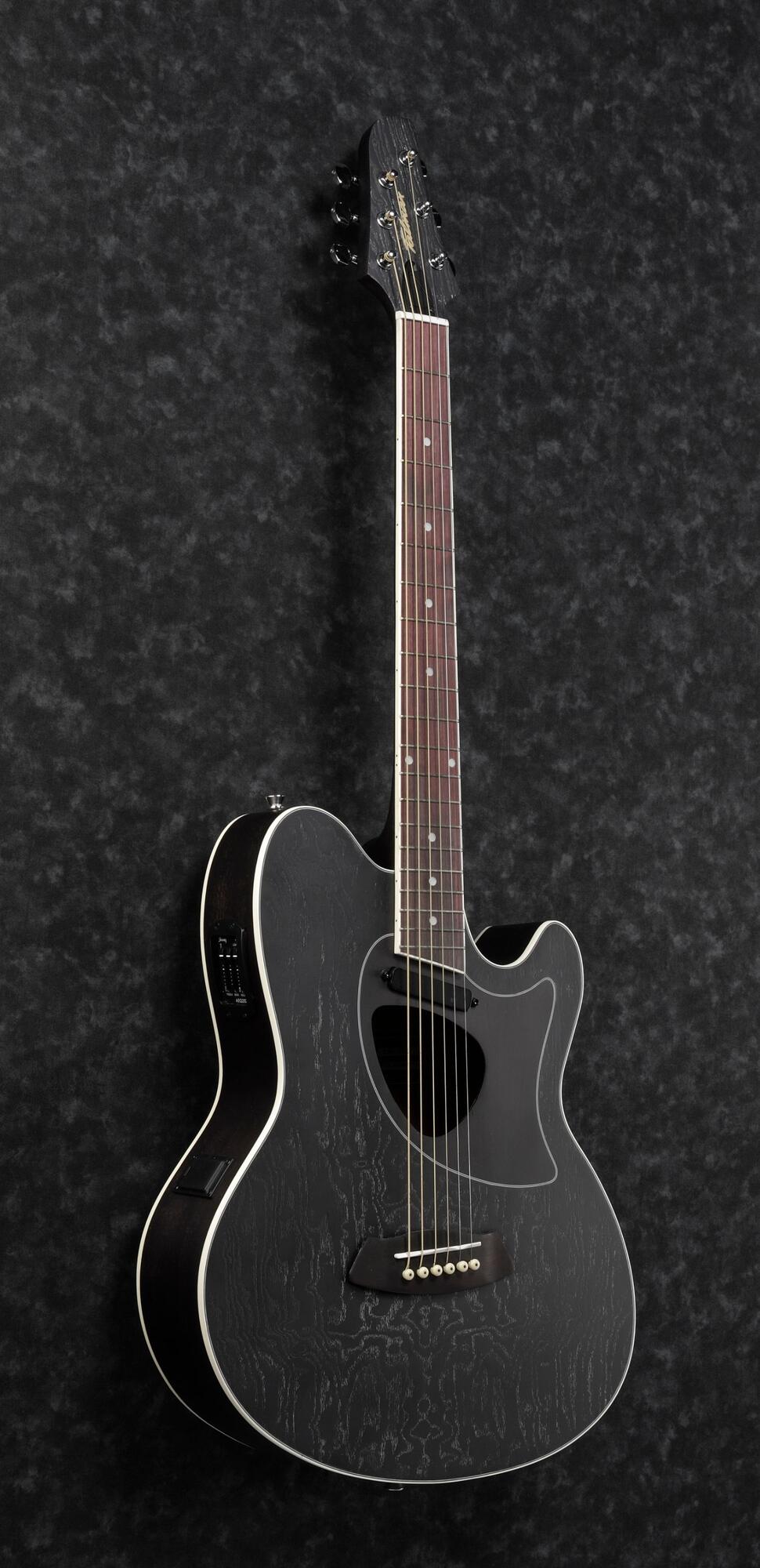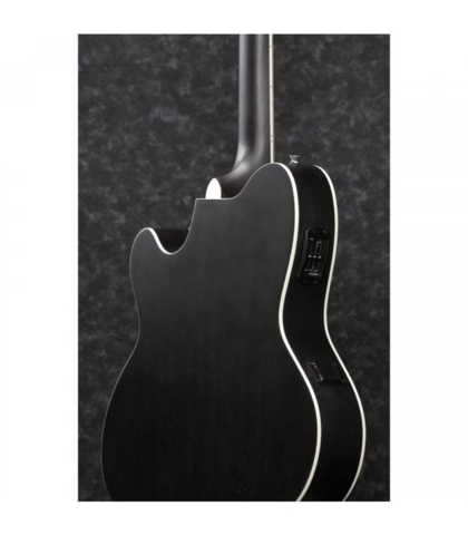 Ibanez - TCM50-GBO - (Galaxy Black Open Pore). Western guitar med pickup system. Akustiske guitarer bruges i forskellige musikstilarter på en helt anden måde end for kun få år siden. Denne Talman western guitar er designet til at blive hørt gennem tunge lydmurer og har samtidig et behageligt design, hvilket gør det nemt at bevæge sig rundt på scenen. Den er lavet med front i asketræ og sapale træ på bagside og sider. Halsen er i okoume træ.