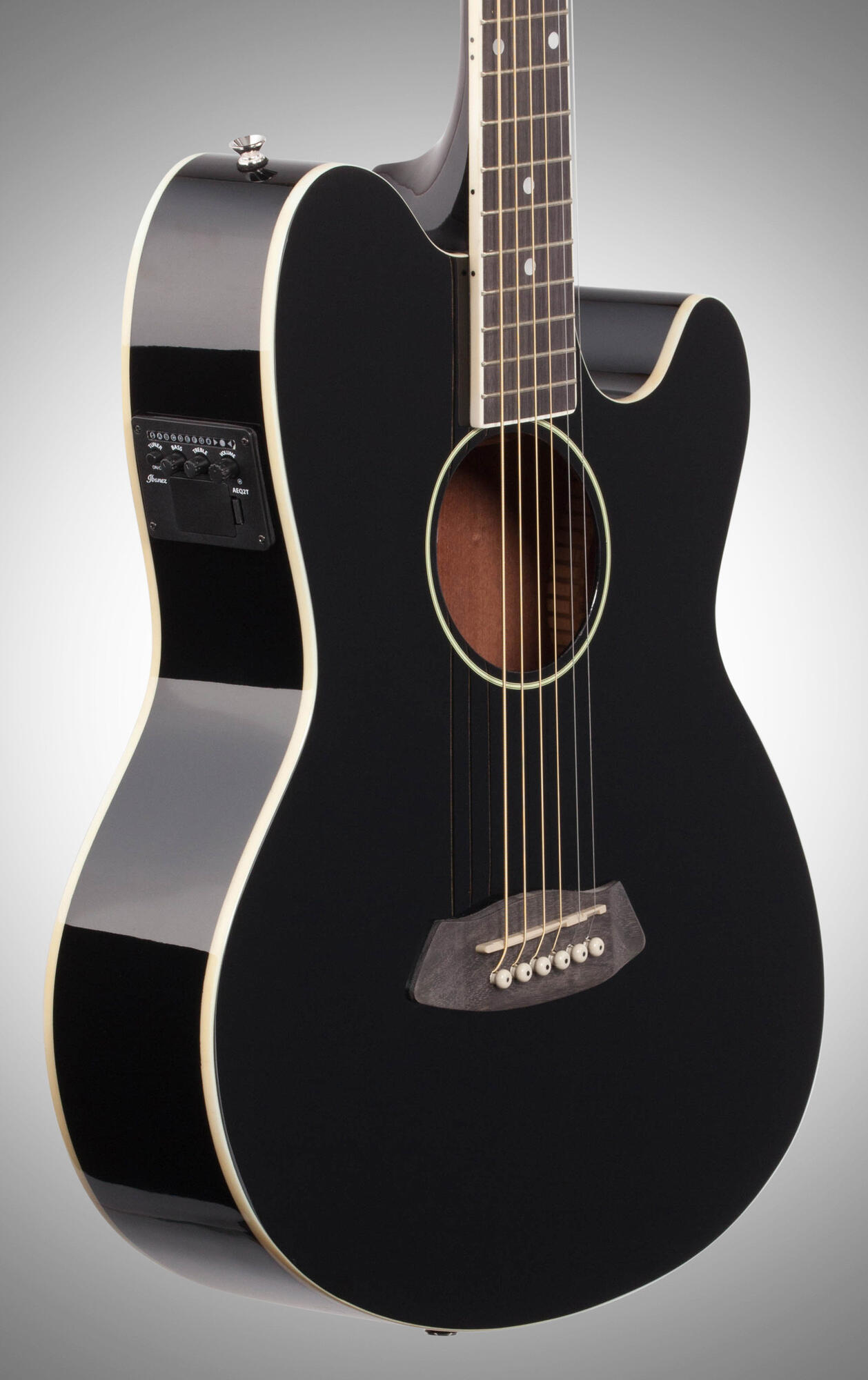Ibanez - TCY10E-BK - (Sort). Akustiske guitarer bruges i forskellige musikstilarter på en helt anden måde end for kun få år siden. Ud over at de skulle lyde godt, skulle de være frække at se på og være smidige at håndtere på scenen. Talman har alt dette. TCY10 med Piezo mic og AEQ200T preamp, som har stærkere brilians og er velegnet til solo. Denne lækre western er i en blank sort finish.