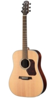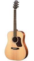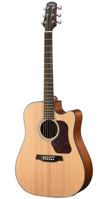 Walden D550CEW - NATURA D550CE er en massiv grantop cutaway halvakustisk Dreadnought med Waldens nye vægtreducerende lavmasseafstivning. Den har en klang, der er både klar og harmonisk kompleks og er velegnet til guitarister, der leder efter et instrument i fuld størrelse. En glasfiberforstærket mahogni-hals med ægte palisander-gribebræt sikrer en levetid på nakkestabilitet.