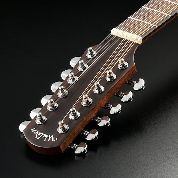 Walden D552EW - 12 strenget - Massivt grandæk, Sider og bagside af mahogni, Low-Mass skalloperet X-afstivning, Gribebræt af rosentræ, Dobbelt truss rod, Glasfiberforstærket hals. Inkl. Taske