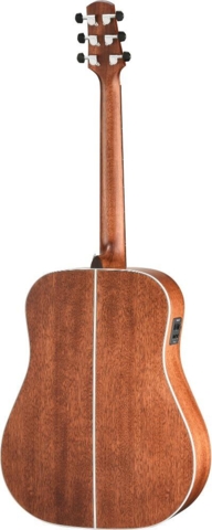 En fuld massiv guitar producerer den fulde tone og en Dreadnought med massiv Sitka Spruce og massiv Mahogni skuffer ikke. Denne klassiske træparring producerer en høj, "bassy" lyd fuld af komplekse overtoner. 2 skinner af glasfiber, der løber fra "nut" til krop, forstærker mahognihalsen, hvilket sikrer en lettere spilleoplevelse og en levetid med stabilitet. Low-Mass afstivningsdesignet forstærker toppen mod strengspænding. Strategisk placerede og formede huller reducerer den samlede vægt af "braces" og tillader derved toppen / fronten at vibrere mere frit. Resultatet, mere tone! Inkl. Taske